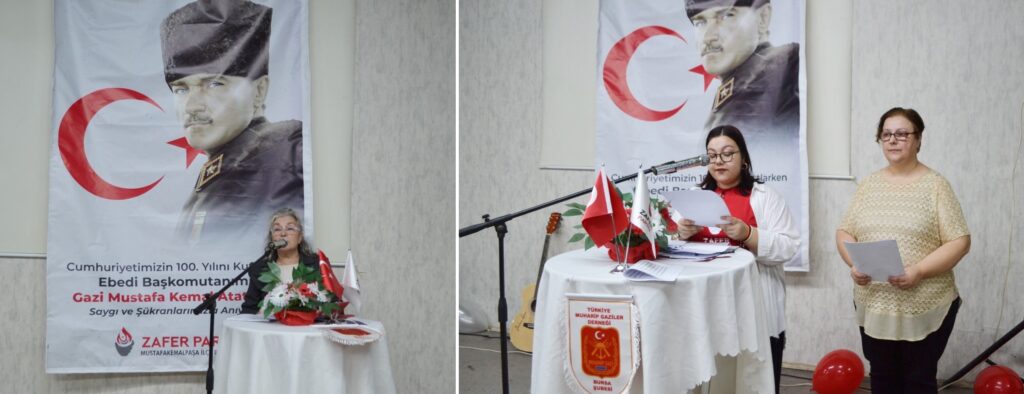 Siyasi parti ve STK temsilcileri ile birlikte vatandaşların katıldığı özel gecede, saygı duruşu ve İstiklal Marşı’nın ardından bir konuşma yapan Zafer Partisi Mustafakemalpaşa Başkanı Göksel Şenkuyumcu; “Akla hayale gelemeyecek kadar büyük fedakârlıklarla kurulan Cumhuriyet’imizin değerini biliyoruz. Gönlümüz isterdi ki, 100. yıl etkinlikleri ülkemiz çapında bir haftalık etkin ve daha görkemli kutlamalarla icra edilsin. Bilinmesini isteriz ki, kim ne düşünürse düşünsün, Cumhuriyet sağlam temeller üzerine kurulmuştur” dedi.